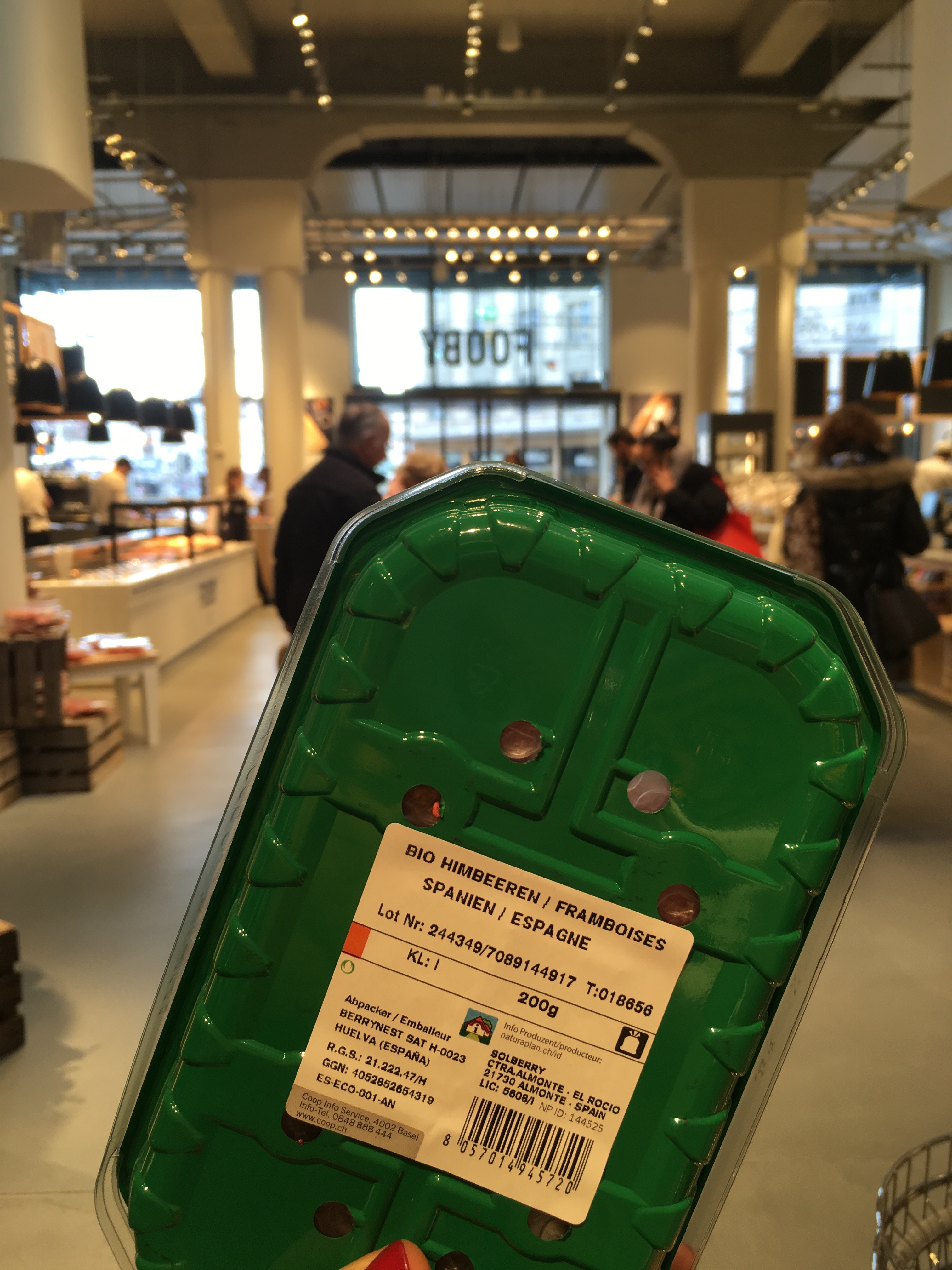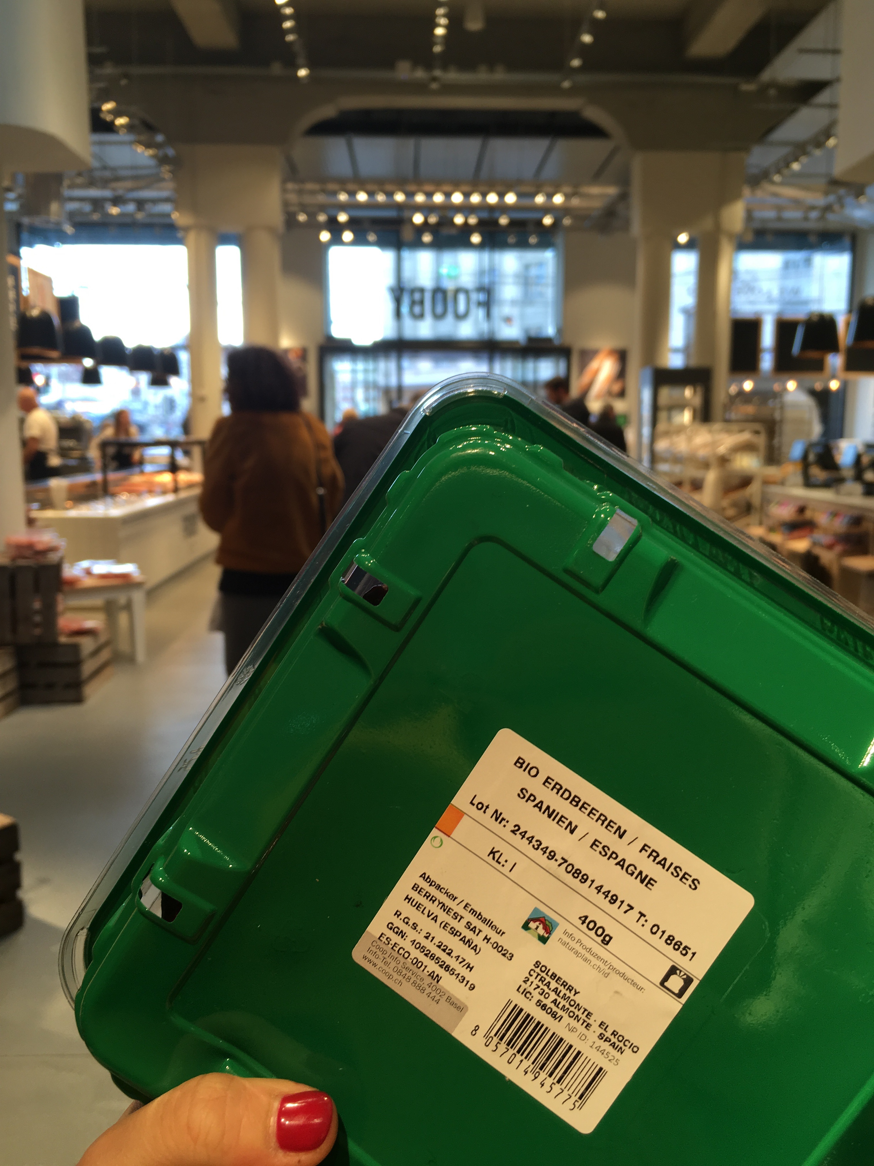 La provenance des produits est également problématique. Au rayon des fruits et légumes, on y trouve notamment des fraises et des framboises d’Espagne (cf. images), à la fin du mois de mars. En décidant de proposer des produits locaux et artisanaux, Coop devrait au minimum respecter la saisonnalité des aliments. Il suffit d’attendre quelques semaines pour voir apparaître ce type de produits chez nous : un peu de patience ! – même si ces fruits estivaux se vendent certainement très bien. Ceux qui les veulent tout de suite se rendront dans une Coop standard. Et ce ne sont pas les seuls produits qui proviennent d’autres pays alors que la Suisse peut en fournir.