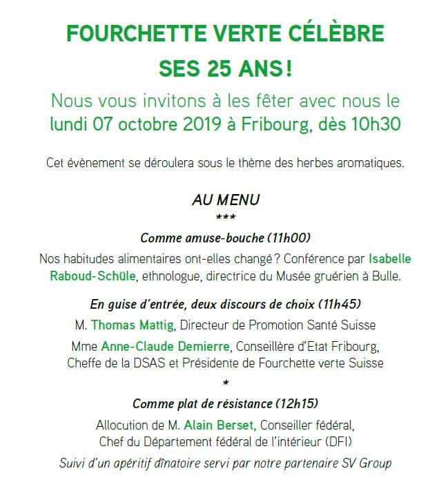 Mais regardons en avant: plus que jamais, il est important d’apprendre à nos enfants à goûter de tout, à se forger une sorte de bibliothèque des goûts et des portions, basée sur la pyramide alimentaire. Cette « goûtothèque » sera une référence pour la vie, un cadeau précieux pour nos jeunes. C’est surtout le pari d’une meilleure santé que nous faisons, depuis 25 ans, et que nous réussissons, jour après jour, grâce aux plus de 1’600 établissements labellisés Fourchette verte partout en Suisse. Leur contribution: servir pas moins de 117’000 repas équilibrés quotidiennement, dont 85’000 aux moins de 16 ans ! Alors, un grand coup de chapeau et un immense merci à toutes les personnes qui «font» Fourchette verte, au quotidien.