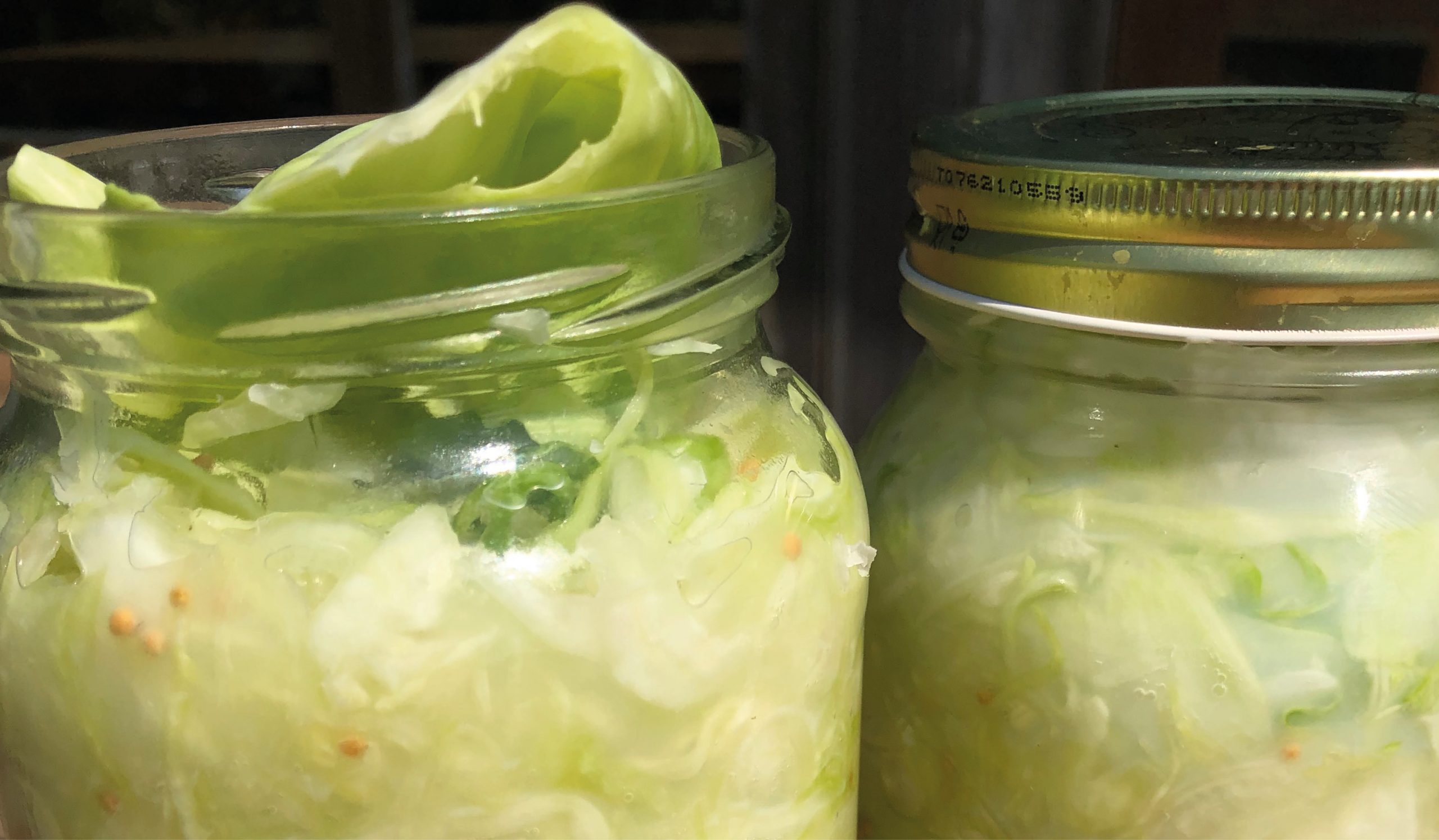 Après avoir coupé le légume en fines lamelles, le mélanger à la main avec le sel pour en extraire le jus, puis ajouter le petit-lait. Remplir les bocaux préalablement bouillis, couvrir avec la feuille réservée et fermer hermétiquement après avoir soigneusement essuyé les bords. Placer les bocaux dans une grande bassine en cas d’éventuel débordement pendant la fermentation. Garder dans un endroit sombre à température ambiante jusqu’à ce que de petites bulles d’air montent à la surface, indiquant que le processus est terminé. Après vérification des bocaux, les décorer avec de jolies étiquettes. À conserver à l’abri de la lumière dans un endroit frais. Une fois le bocal ouvert, il se range au réfrigérateur.